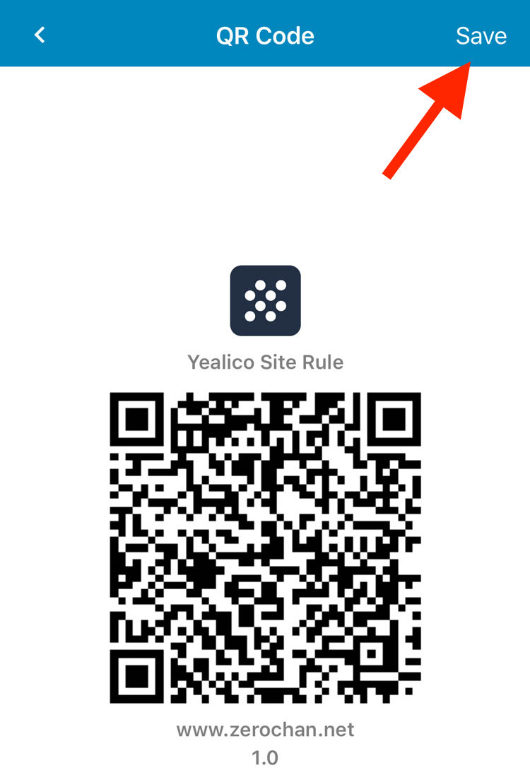 After the QR code is in effect, you can save the generated site rule QR code by clicking the ‘Save‘ button in the upper right corner.
